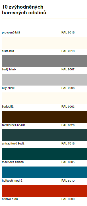 | Barevené provedení lamel u výrobce Hörmann | 10 zvýhodněných barevných odstínů v png |
